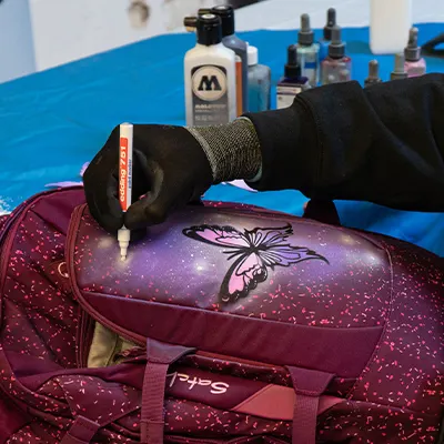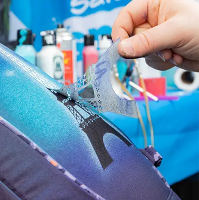 Ob Fußball, Peace-Zeichen oder Smiley – durch die Auswahl deines Spray-Motivs kannst du deinen individuellen Style zum Ausdruck bringen. Unsere Sprayer haben eine riesige Auswahl an Motiv-Vorlagen für dich im Gepäck, aus denen du frei auswählen kannst.