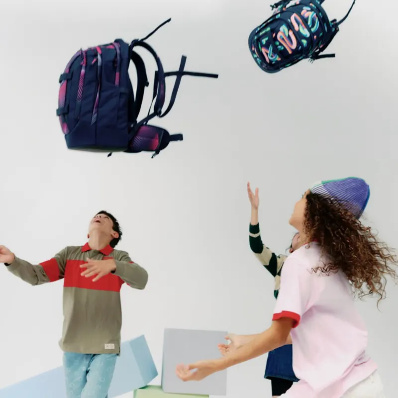 Regen auf dem Weg zur Schule, der dreckige Klassenboden, ein schneller Wurf in die Ecke beim Nachhausekommen: Unsere Produkte können es mit so ziemlich allen Tücken des Schulalltags auf sich nehmen. An 170 Schultagen im Jahr, Jahr für Jahr. Dafür sorgen wasserabweisende und leicht zu reinigende Materialen, eine stabile und doch flexible Konstruktion, sowie hochwertige Zipper-Puller und Schnallen.