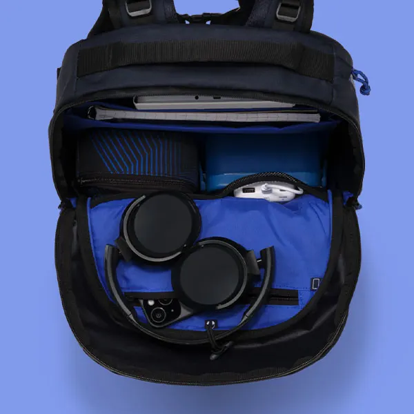 Thanks to the smart interior organization, notebooks, accessories, and technical devices such as headphones are neatly stowed away and always within reach.