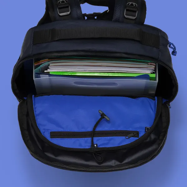 Our waterproof outer material with a water column of 1,500 mm and water-repellent YKK zippers with coating ensure that school supplies remain protected in light rain.
