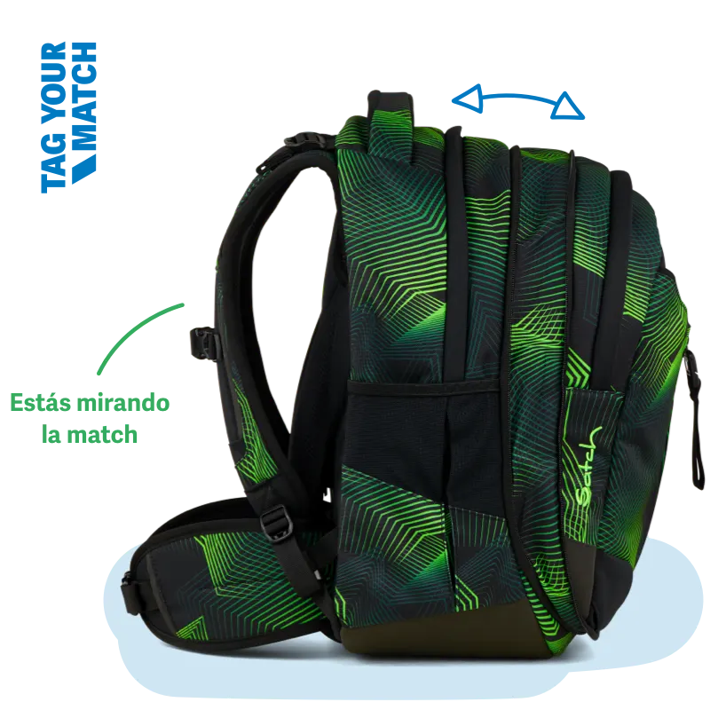 ¿Una larga jornada escolar? ¡Con la satch match no tendrás ningún problema! Bolsillo frontal inteligente, extensión de volumen de 5 litros: mete lo que necesites y estarás preparado para todo
