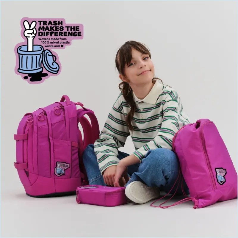 Le set Trash to Treasure en trois pièces pare à toute éventualité, mais certainement pas celle de s'ennuyer. Le sac à dos scolaire sort tout de suite du lot avec son matériau innovant et accrocheur. Et comme le style compte jusque dans les moindres détails, il est assorti d'une trousse fourre-tout et d'un sac de sport.